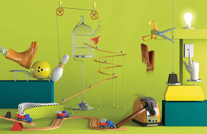 Un presentador / dinamizador da la bienvenida al grupo y explica la actividad. Luego el grupo se divide en equipos y juntos deberán colaborar para crear una estructura en cadena en el que una bola deberá hacer el recorrido hasta llegar al ratón, el objetivo final. Los participantes dispondrán de hasta 30 objetos distintos para construir el recorrido. Cuando finalice el tiempo se pondrá a prueba el recorrido y sólo si funciona correctamente y se ha creado con ingenio y creatividad resultará una obra maestra.