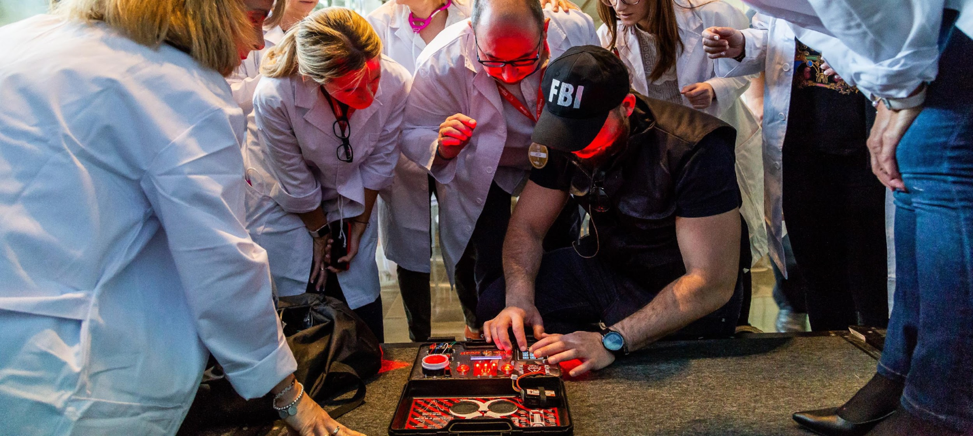 Varios agentes de FBI, que pedirán la colaboración de todos los presentes, para encontrar un posible artefacto sospechoso.
