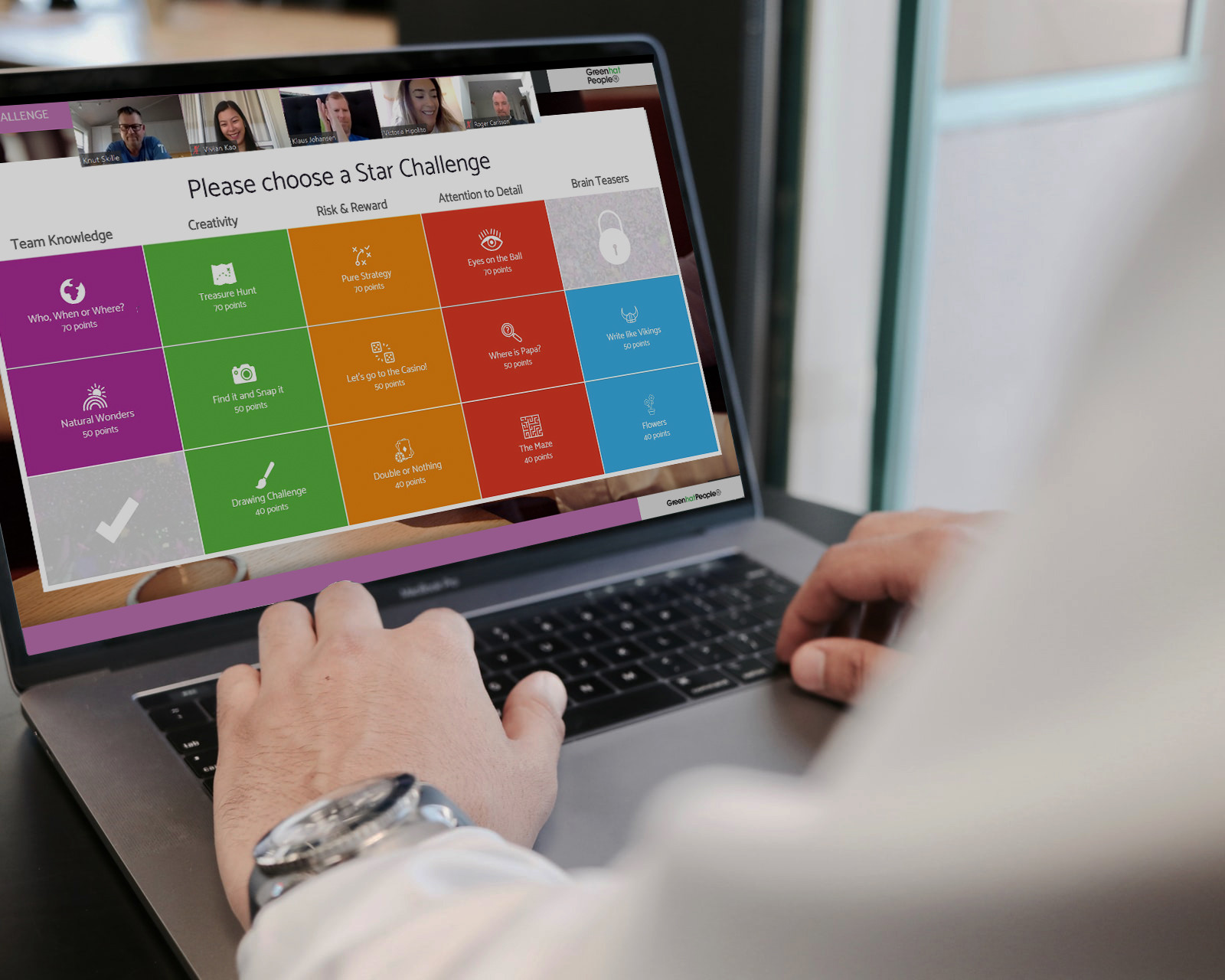 Es una experiencia muy amena y entretenida que lleva tu reunión online a un nivel completamente nuevo. Los desafíos están diseñados para provocar risas y promover un gran espíritu de equipo.