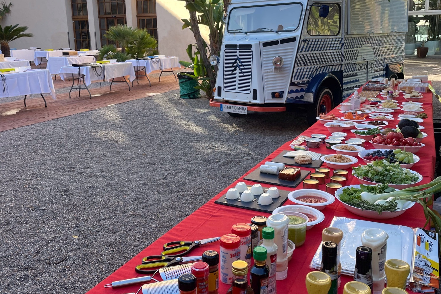 Después de que el presentador explique la actividad, los participantes se dividen en equipos y se distribuyen en las mesas de la sala. En cada mesa disponen de los ingredientes y material necesario para crear la tapa. Cada integrante del equipo tendrá asignado un cargo del que será responsable durante toda la actividad.