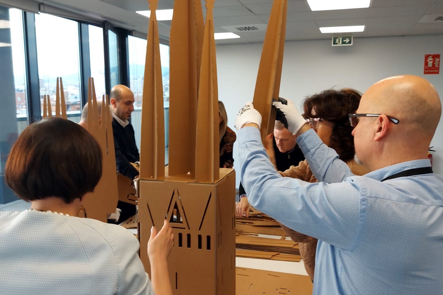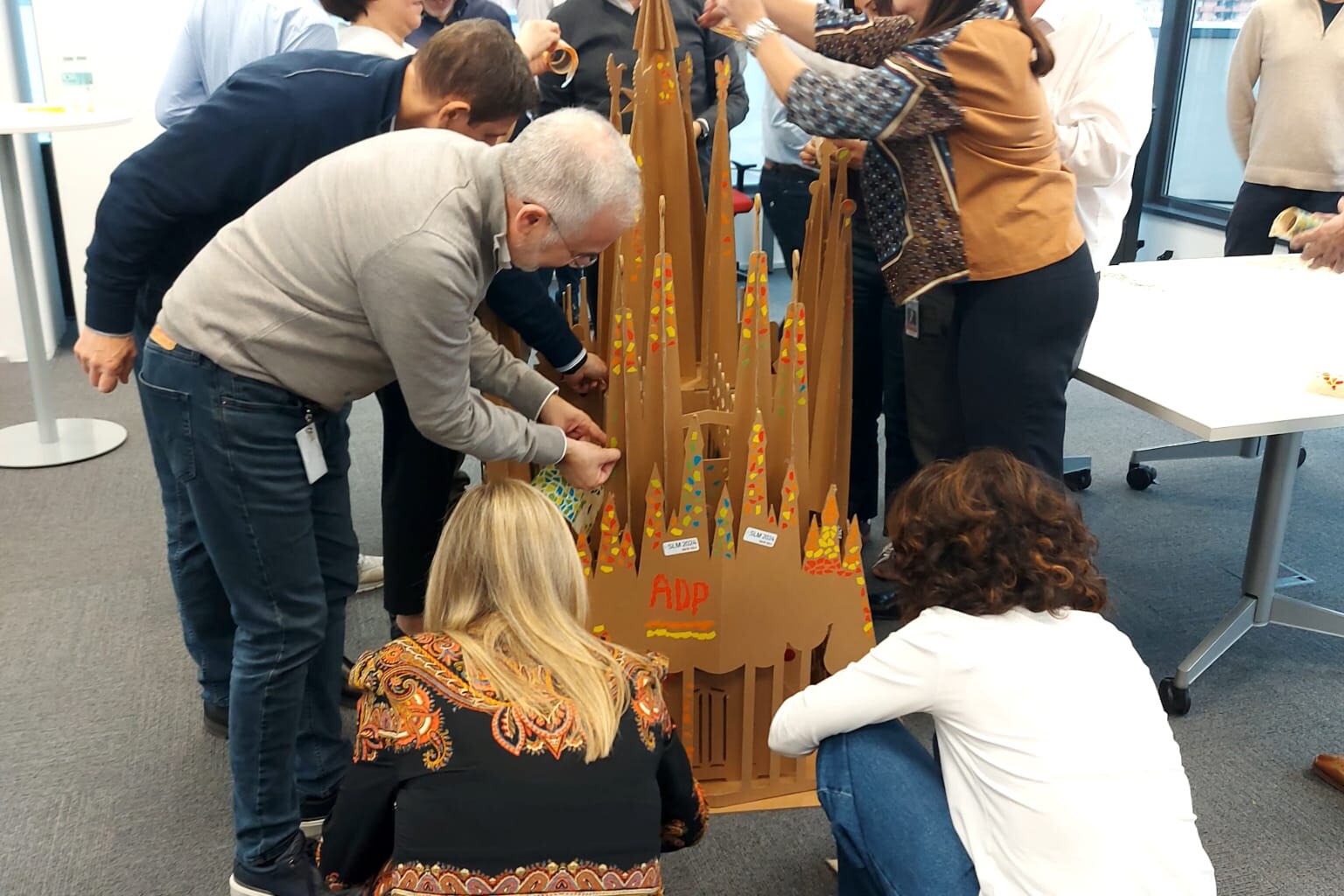 ADP arrancó el año con una actividad única, cultural, artística y muy creativa: Gaudí Challenge. Los participantes, divididos en equipos, vivieron la experiencia de ser arquitectos ayudantes del mismísimo Antoni Gaudí con el único objetivo, esta vez sí, de terminar su famosa obra: La Sagrada Familia. Tras realizar unos divertidos retos relacionados con Gaudí y Barcelona, los equipos consiguieron elementos decorativos y todo el material necesario para construir la maqueta de casi 2 metros de altura de la Sagrada Familia formada por 51 piezas de cartón. Toda una maravilla arquitectónica que sirvió para potenciar varias soft skills como el trabajo en equipo, la comunicación, la creatividad, planificación y toma de decisiones. Una actividad colaborativa, llena de historia, cultura y con un efecto WOW final que no dejó indiferente a nadie.