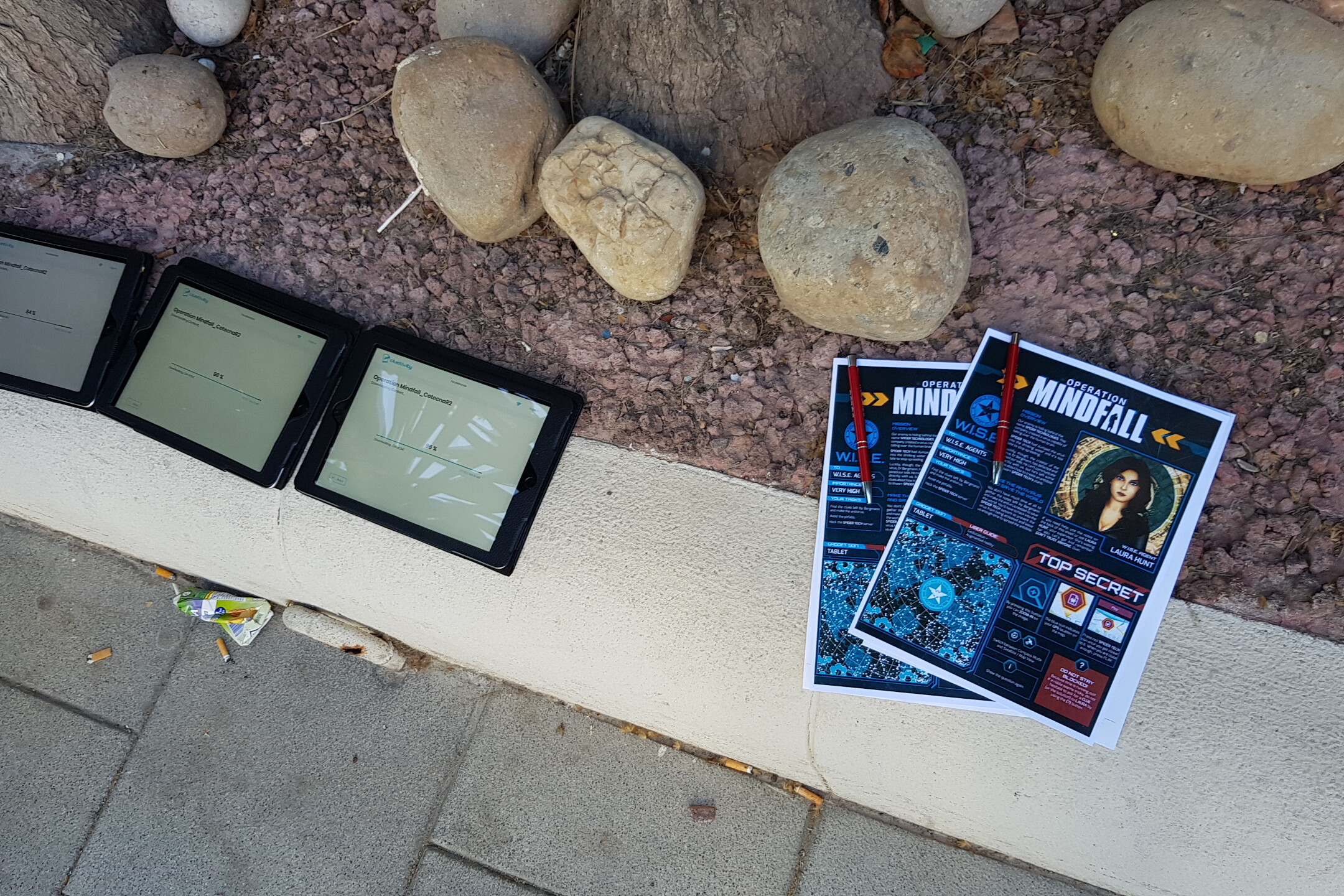 Desarrollamos nuestro juego de escape interactivo: Operation Mindfall, una dinámica outdoor tematizada con un relato sobre espías y una importante misión que cumplir. Los participantes eran agentes secretos, especialmente seleccionados para derrotar a una malvada organización que amenazaba el mundo.El juego fue adaptado a Sitges y estaba guiado por iPads geolocalizados donde se planteaban numerosas misiones y enigmas a resolver, utilizando poderosos efectos de Realidad Aumentada.Los equipos debían resolver durante 2 horas estas pruebas en diferentes puntos por el centro de la ciudad, utilizando el ingenio, habilidad y creatividad. El proyecto fue un éxito y ¡los asistentes se quedaron con ganas de más! :)