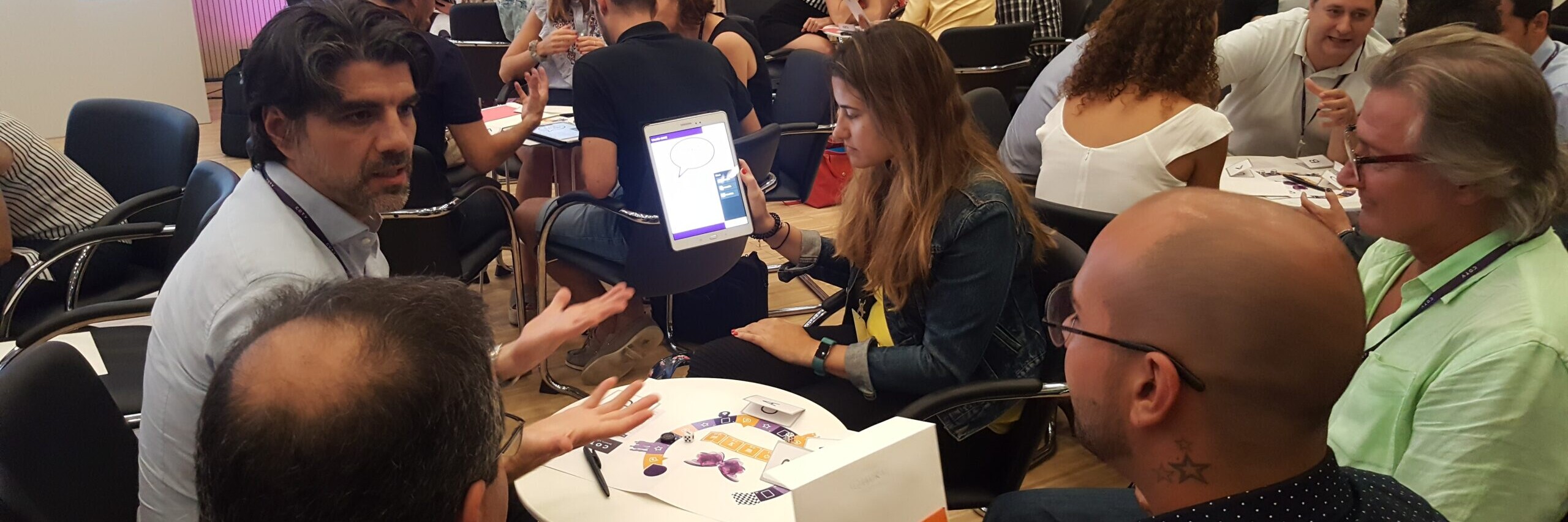 With the goal of working on and internalizing corporate values, Coty held a workshop with its employees using gamification through our digital training experience: Values Game.Each team had an iPad, a game board, a token, some dice, and additional analog material. With our motto of "learning through play" and generating engagement with various game dynamics, participants embodied the corporate values in an active and participative manner.Trivial questions, debates, practical cases… were key to ensuring that everyone went home successfully understanding the company's values.