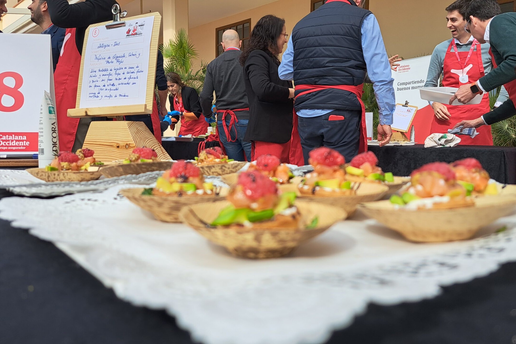 Through a fun gastronomic experience, the Catalana Occidente group crafted creative tapas in teams, putting their skills to the test as true kitchen chefs. The Tapa's Challenge became the perfect excuse to work on communication, collaboration, creativity... and above all, to reinforce that feeling of trust and teamwork.Participants prepared different cold tapas within a limited time frame, which were later tasted by both the chef and the other teams. An activity full of flavor!