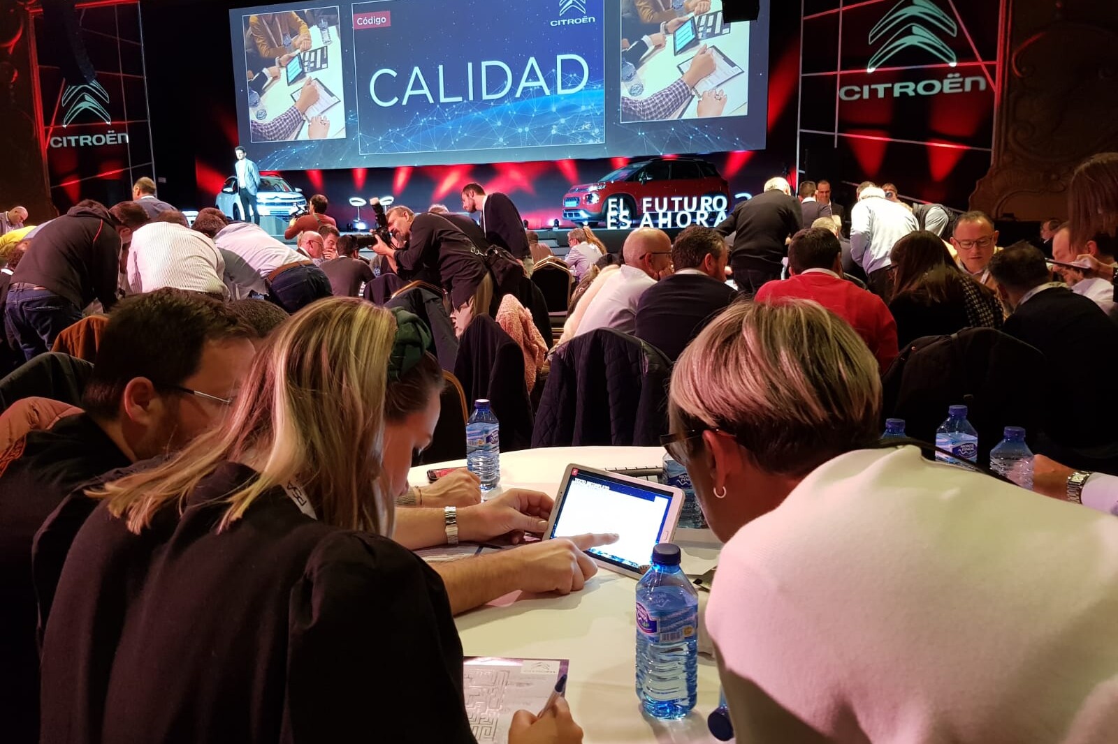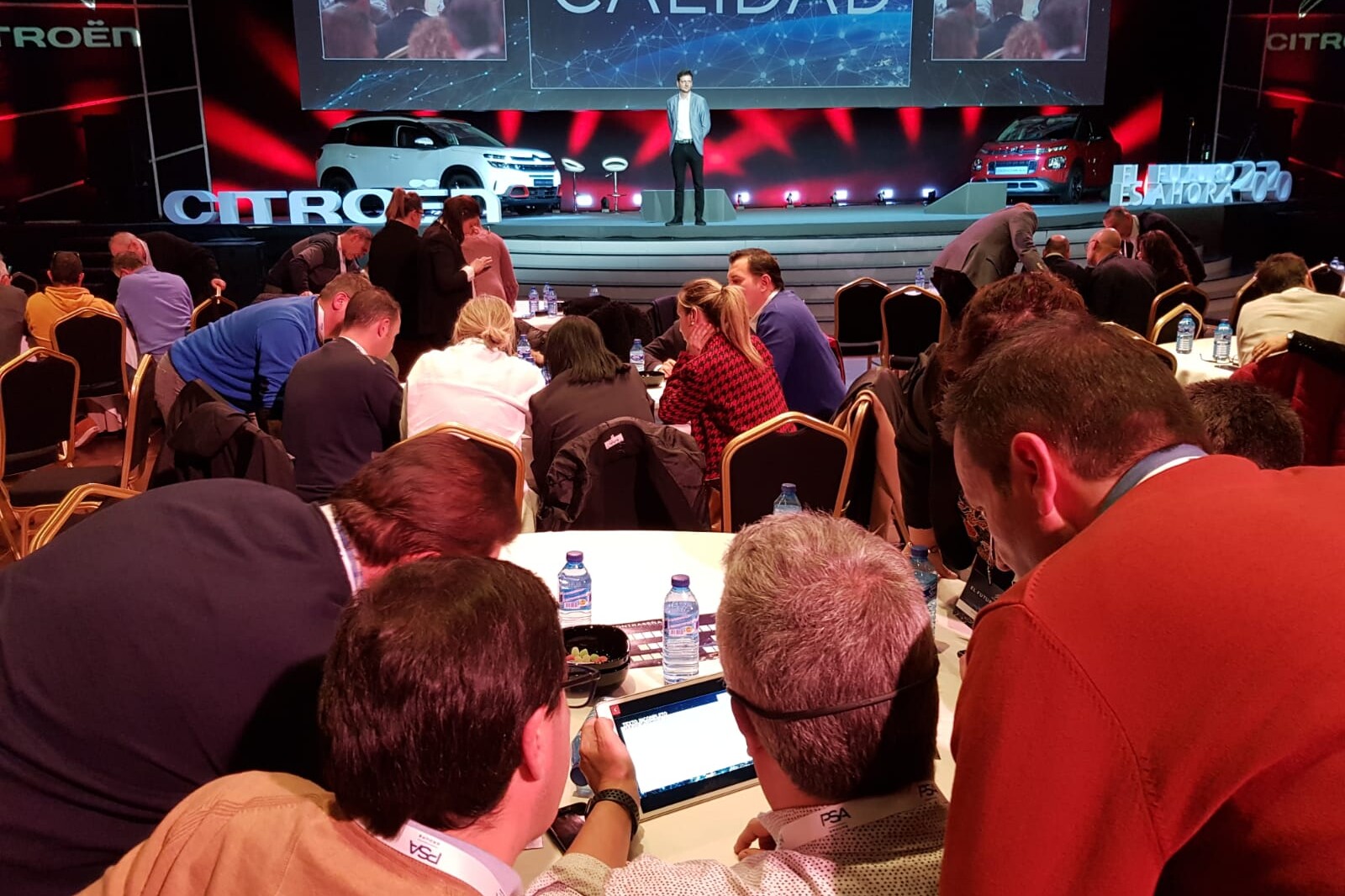 Con el objetivo de gamificar una convención anual, PSA apostó por un formato tipo Escape Room guiado por tablets y mezclando contenido digital con analógico. Se trata de una dinámica gamificada por bloques, en la que cada bloque se activa con un código que se muestra en la pantalla de la sala. De esta forma, generamos engagement e interacción durante toda la convención. Cada bloque correspondía a un tema / pilar dentro de la propia convención: clientes, facturación, calidad y electrificación. Una solución digital que fomenta el active learning al más alto nivel mediante una experiencia totalmente inmersiva con tiempos limitados, retos de lógica, preguntas trivial, acertijos y juegos de ingenio.