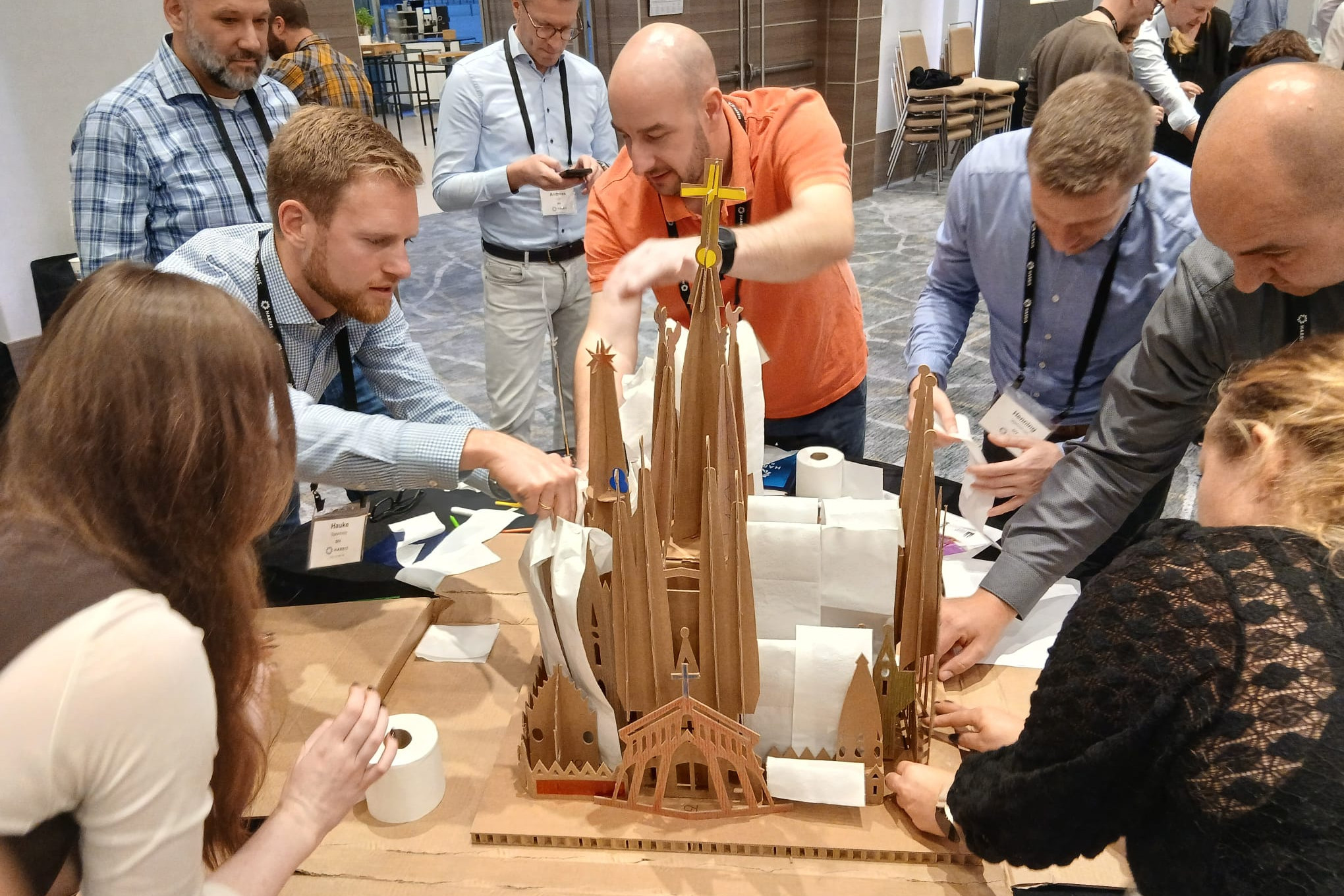 Harris International Group reunió a 120 participantes en Barcelona para vivir una experiencia de team building única inspirada en el legado de Antoni Gaudí. Desde Le Monnier & Co organizamos Gaudí Challenge, una dinámica cultural y gamificada que combina exploración, creatividad y colaboración en torno a uno de los iconos más universales de la ciudad. Divididos en equipos, los asistentes se enfrentaron a distintos retos vinculados a la obra y la historia del arquitecto, poniendo a prueba su comunicación, estrategia y coordinación. Como parte central de la experiencia, los participantes trabajaron juntos en la construcción de diferentes maquetas de la Sagrada Familia, aportando cada equipo una pieza fundamental para completar el resultado final. Una actividad que fusiona cultura, juego y trabajo en equipo, convirtiendo la jornada en una experiencia memorable y profundamente colaborativa en el corazón de Barcelona.