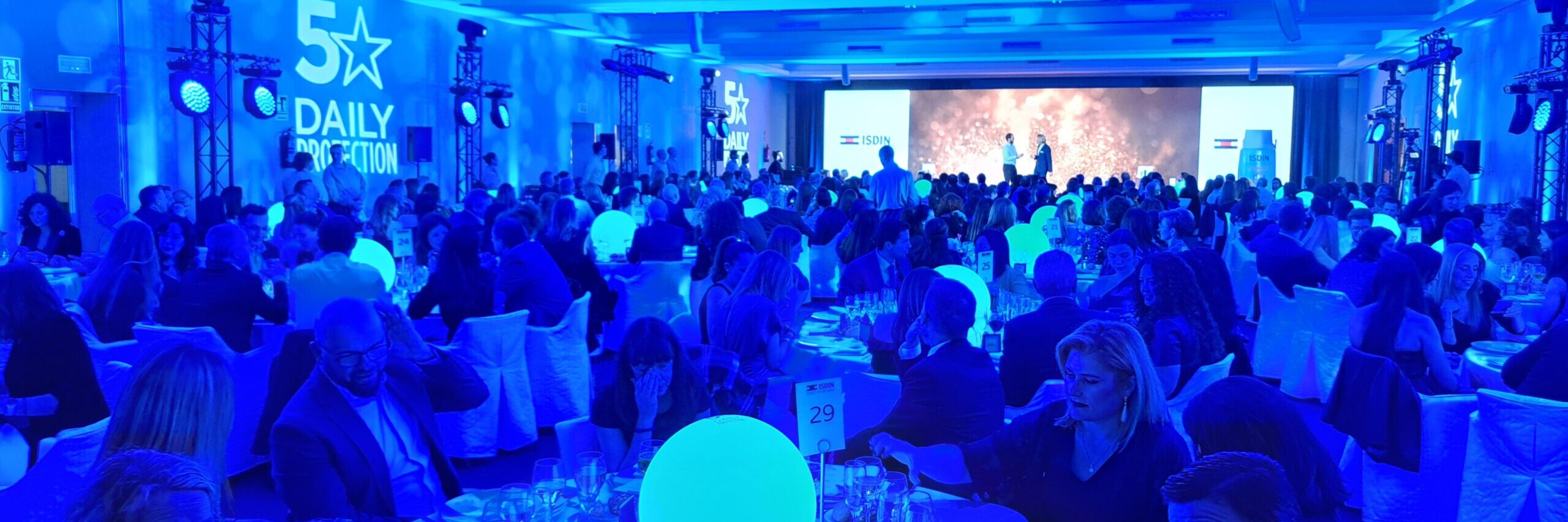 For 10 years we have helped and supported Isdin to organize its internal meetings with employees in different locations.Our involvement has ranged from the management and development of the meetings, the setting and dynamization of the gala dinners, the design of audiovisual content, to the team building dynamics to unite, connect and motivate its teams and collaborators.Always seeking excellence and innovation in each of the details of the meetings that have allowed us to achieve great success and appreciation from the attendees of a large company leader in its sector.