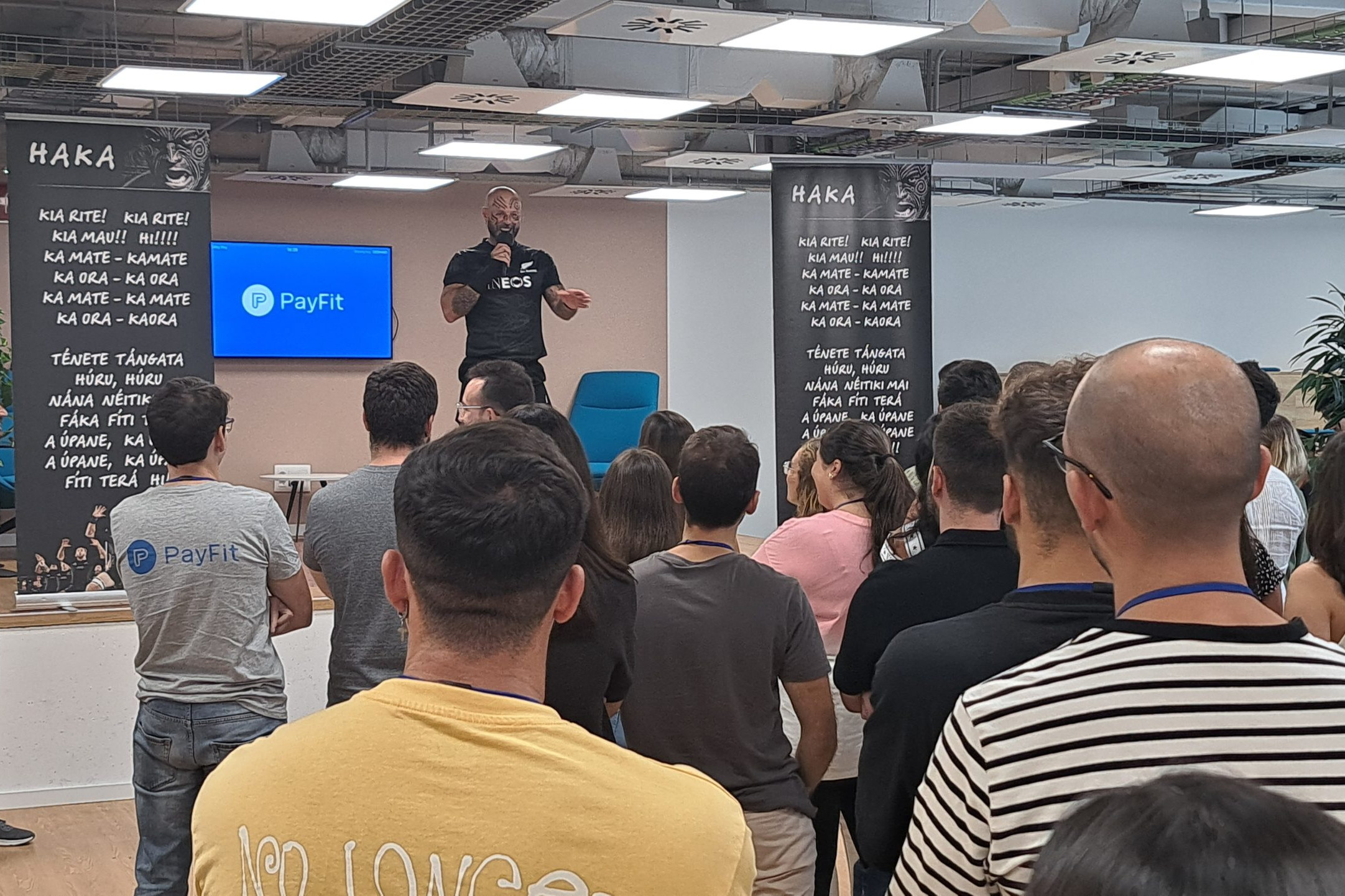 Para Payfit realizamos la Haka, un baile típico maorí con el que los participantes a través de movimientos y gesticulaciones tribales siguen un ritmo todos juntos. En esta experiencia se combinaron cantos, movimientos, voces y gestos sincronizados, todos a una, los participantes primero ensayaron la coreografía y las voces que les impartían los especialistas. Luego todos en un momento único de fuerza y energía se dejaron llevar por el momento y juntos, pintados como verdaderos integrantes de una tribu, representaron el baile y sus gestos. Una actividad que no dejo indiferente a nadie y de la que los integrantes vivieron con pasión y entusiasmo.